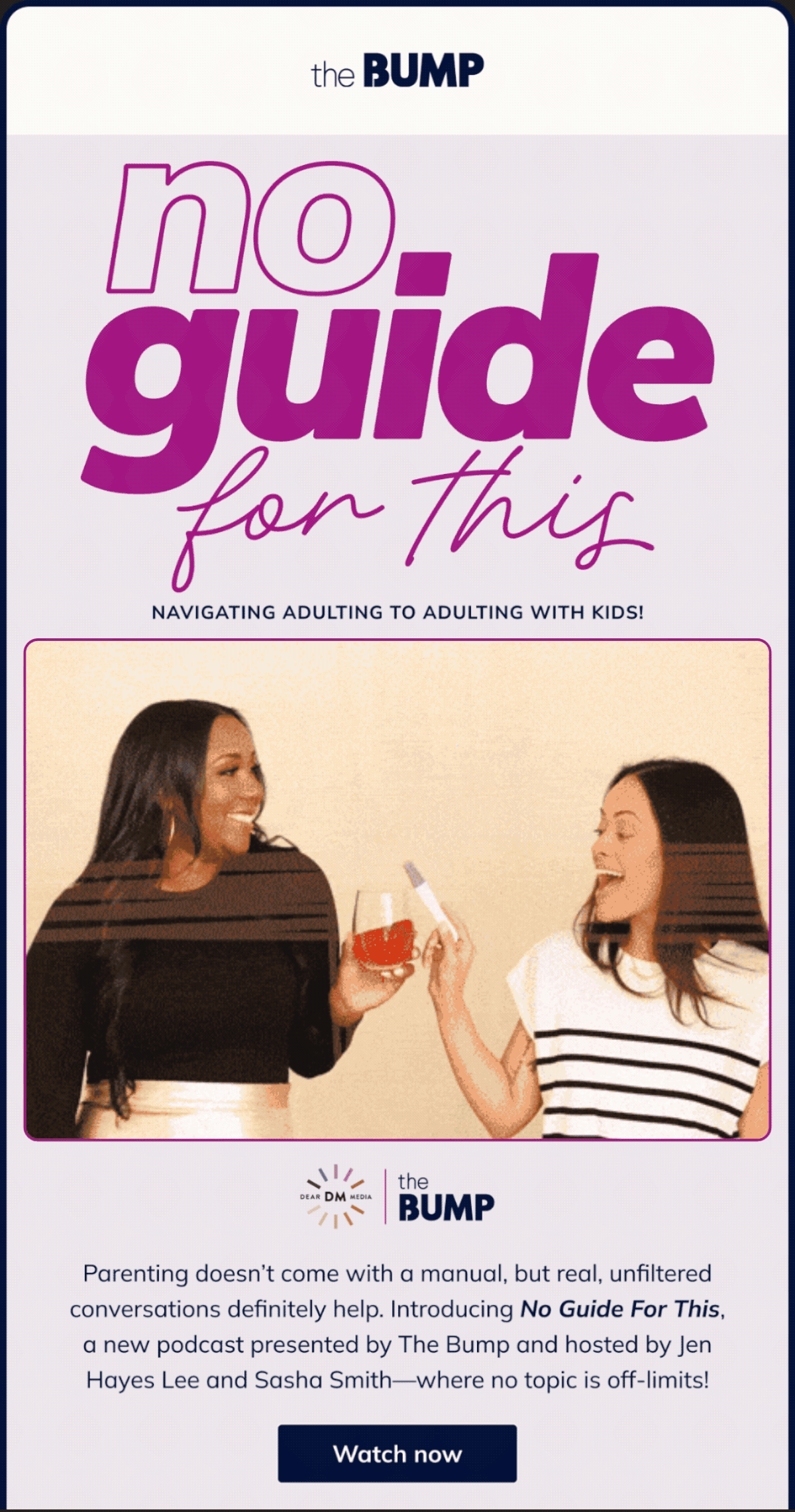 No Guide for This offers parents a sense of supportive community at this pivotal stage. Get ready for candid conversations with celebrity guests and The Bump hosts Jen Hayes Lee and Sasha Smith as they serve up relatable stories, meaningful insights and a healthy dose of humor. Whether you’re newly postpartum, in the throes of toddlerhood or debating whether you want to have children at all, you’ll find here an honest look at life, relationships and the identity shifts that happen when kids arrive on the scene.
